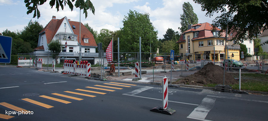 Blick vom Nikolausberger Weg zum Nonnenstieg. Auf der "grünen" Verkehrsinsel ist ein Fußweg angelegt. |