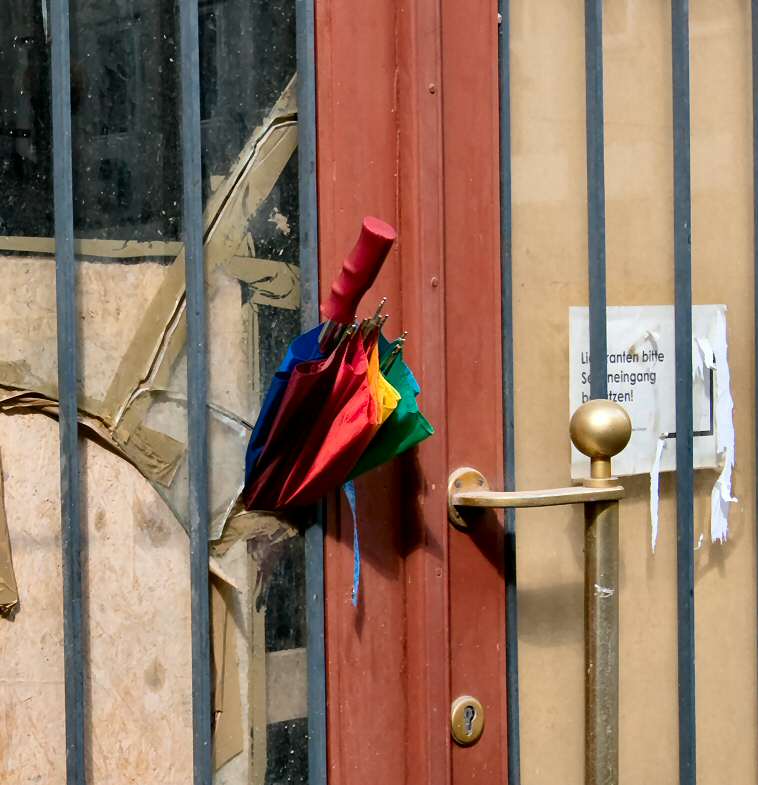 Dann schmückt dieser Schirm über Wochen den Haupteingang ... |