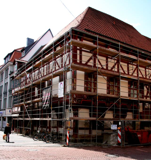 In den 1990er Jahren wurde die Junkernschänke außen fehlsaniert, als Farben verwendet wurden, die das Holz gefährdeten. Irgendwie war das Haus in den Besitz der Stadt gekommen, die einen erheblichen Sanierungsbedarf konstatierte und nichts tat. Anfang des neuen Jahrtausends wurde das Haus verkauft; mit Aufnahme der Sanierung stellten sich erhebliche Probleme heraus, die den Kaufvertrag in Frage stellten, der zu Gunsten des Käufers geändert wurde. Aufwand und Kosten der Sanierung lagen dann deutlich über den Vorausschätzungen. Das Ergebnis: eine jahrelange Baustelle, die die Attraktion des ganzen Straßenzuges erheblich beeinträchtigten. | |
