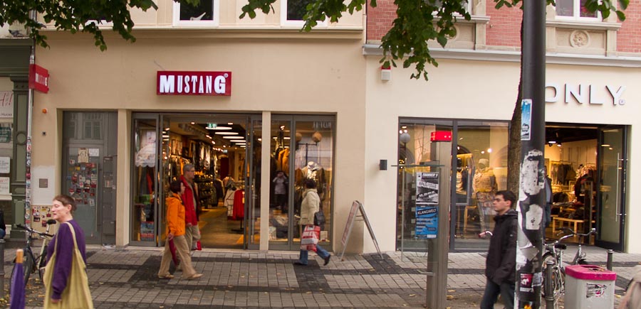 Im September 2010 sind ab Deichmann stadteinwärts drei Läden eröffnet: Only, Mustang und Benetton |