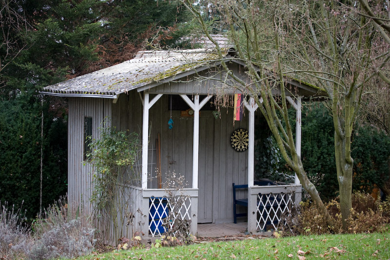 Das Gartemnhaus versinkt bei fester Zeit und Blende im Dunkeln