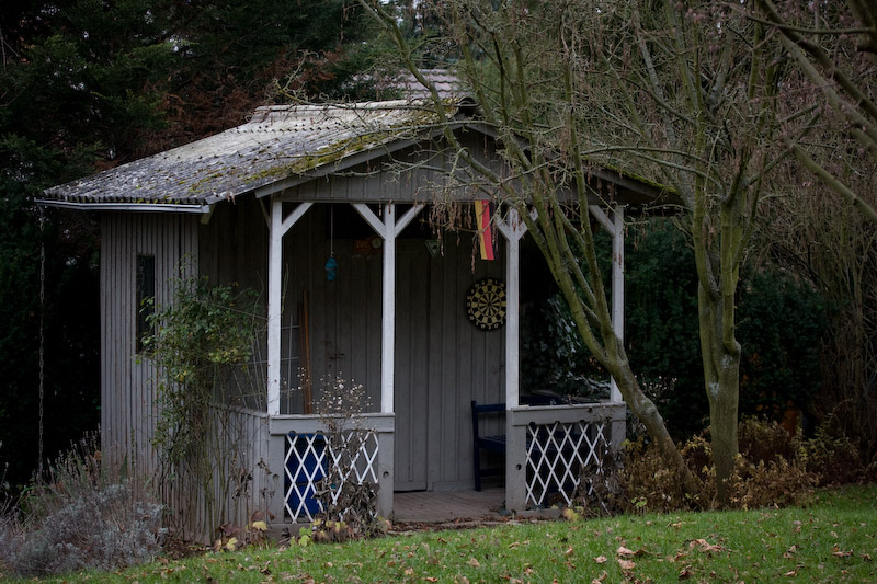 Das Gartemnhaus versinkt bei fester Zeit und Blende im Dunkeln