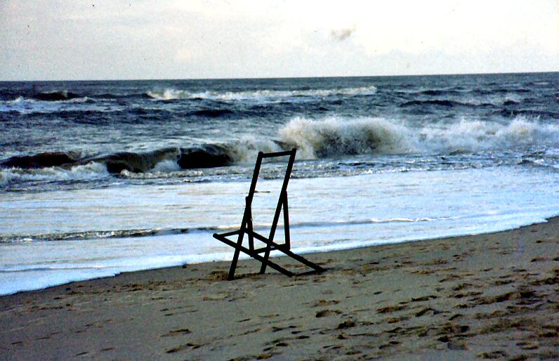 Liegestuhl im Dezember Dieses Photo entstand an der Jahreswende 1979/80 an der dänischen Nordseeküste; vom Dia eingescannt. |