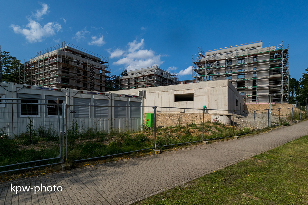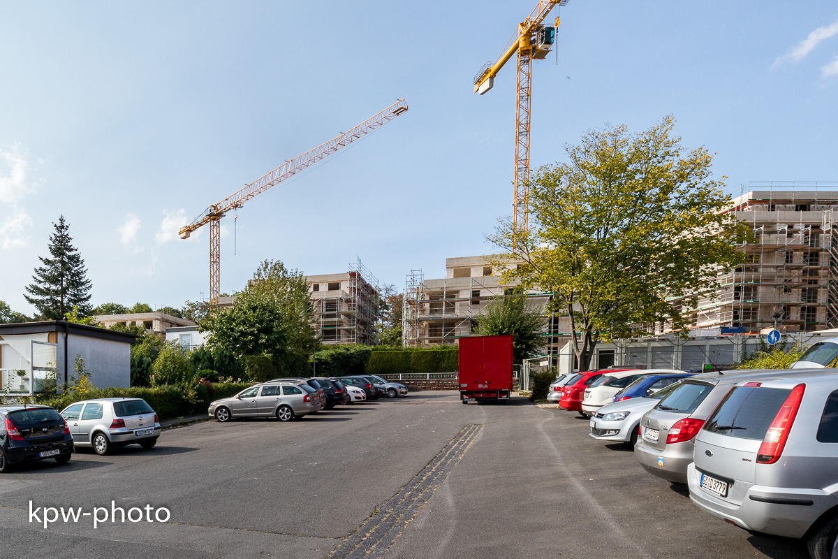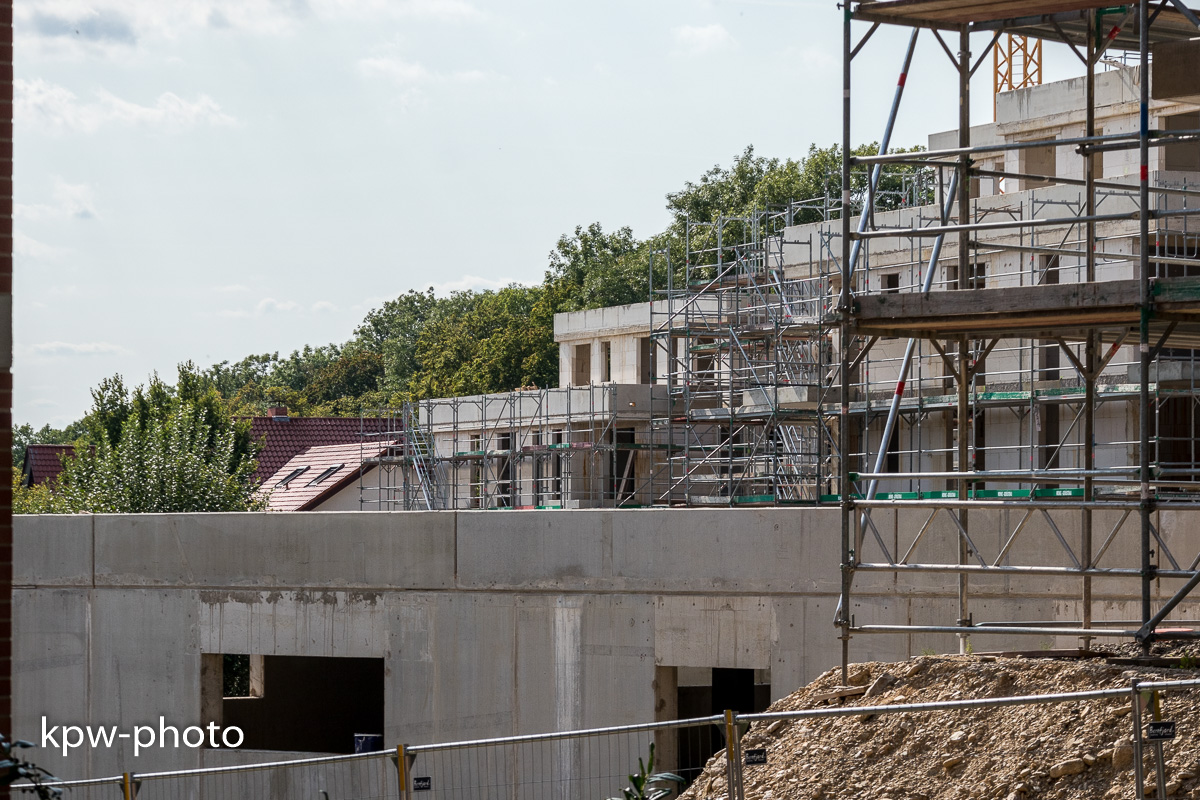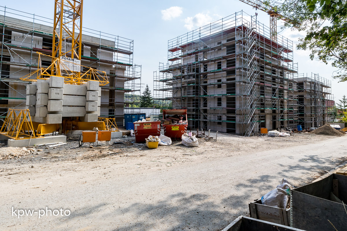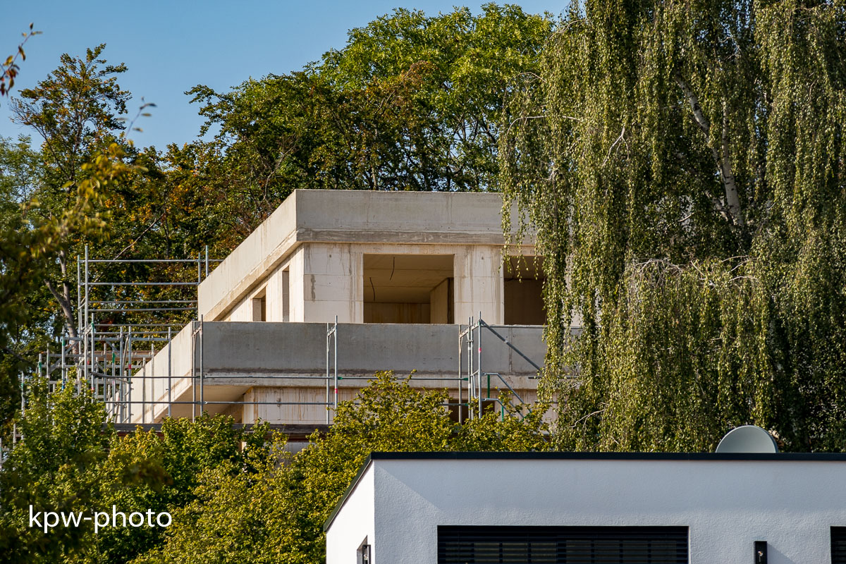 Höhenstaffelung der Neubauten - links die Dächer schon vorhanderen Häuser am Nikolausberger Weg zu erkennen, die deutlich überragt werden |