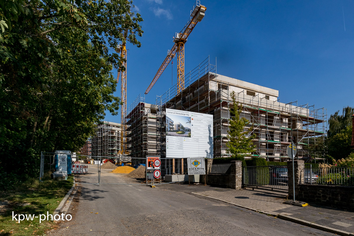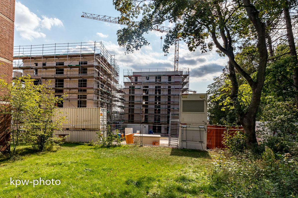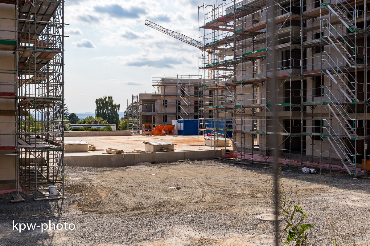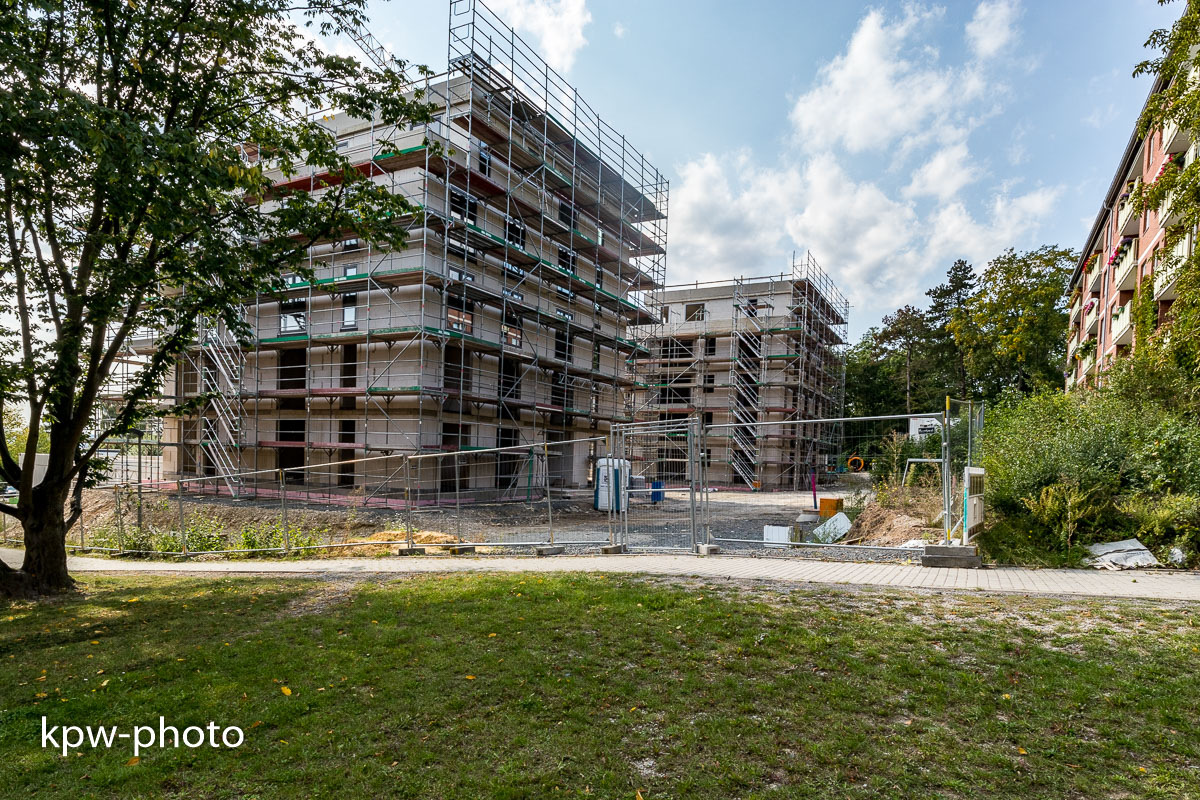 Höhenstaffelung der Neubauten - links die Dächer schon vorhanderen Häuser am Nikolausberger Weg zu erkennen, die deutlich überragt werden |