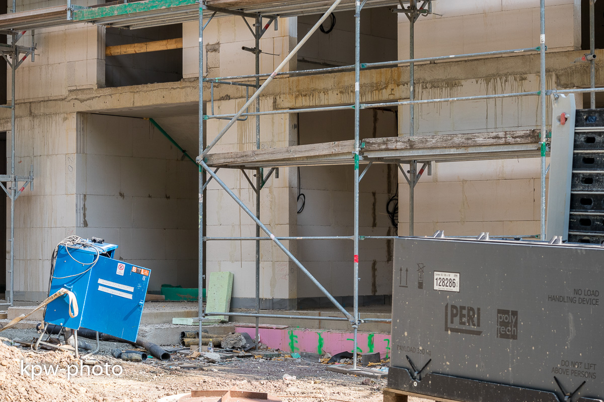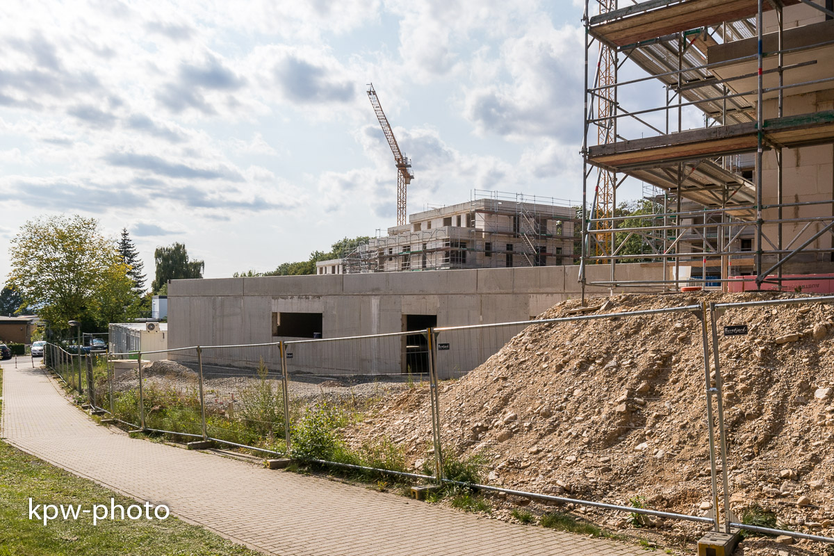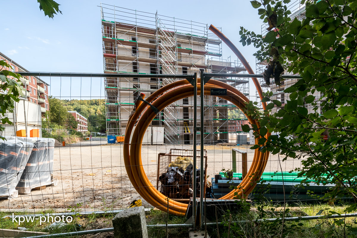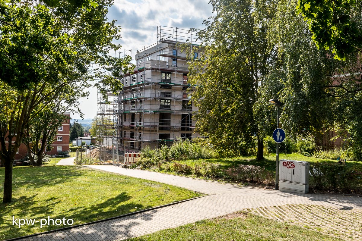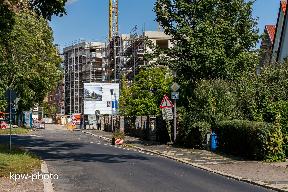Höhenstaffelung der Neubauten - links die Dächer schon vorhanderen Häuser am Nikolausberger Weg zu erkennen, die deutlich überragt werden |