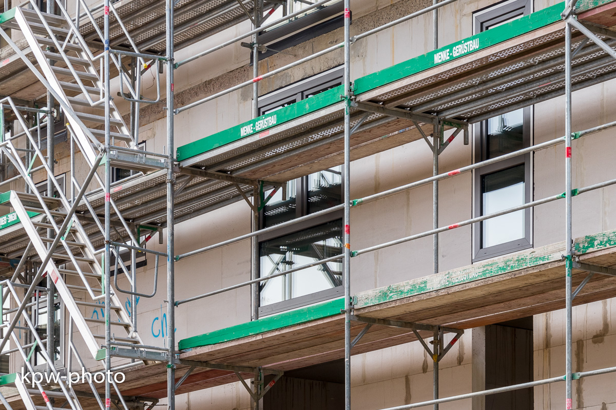 In einigen Stockwerken sind schon Fenster eingebaut |