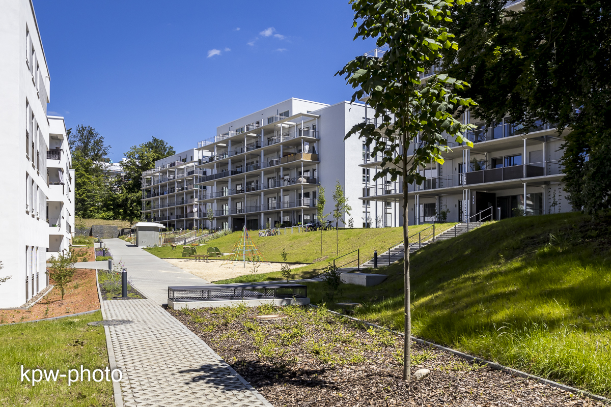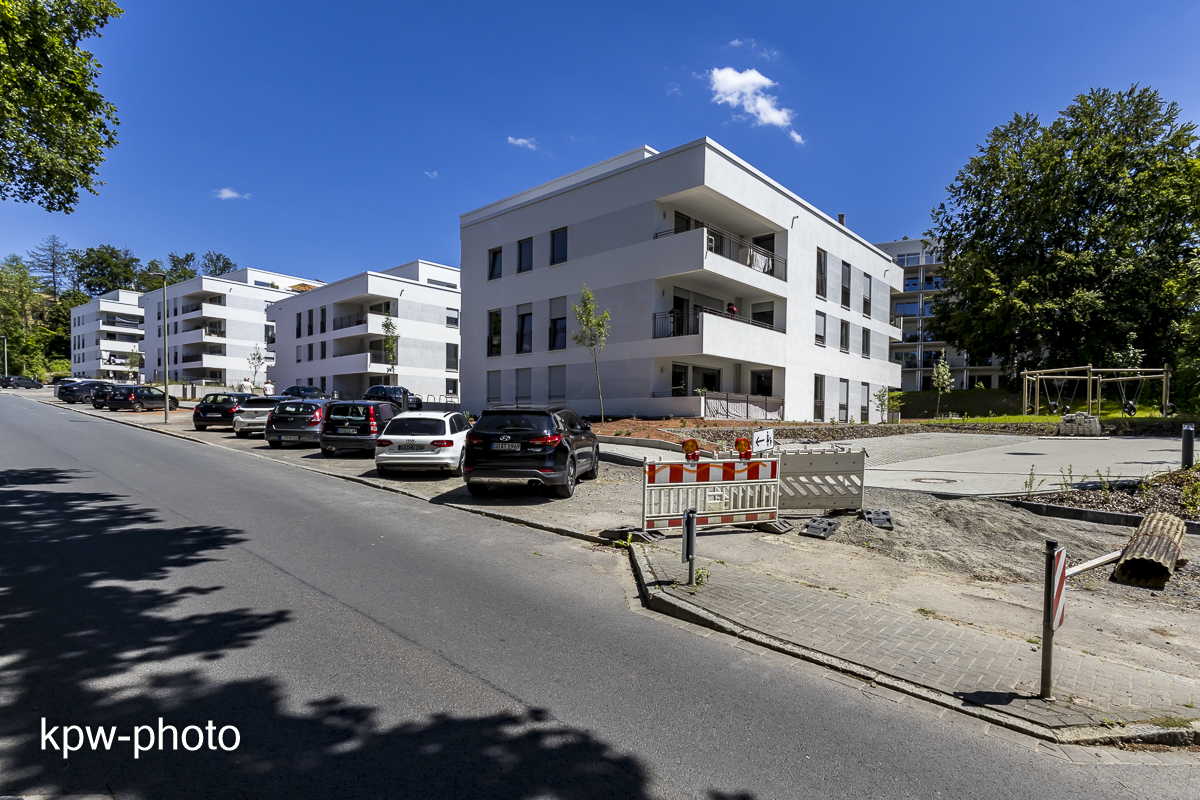 Straßenfront Nonnenstieg am 9. Juni 2024 - die beiden EBR-Gebäude |