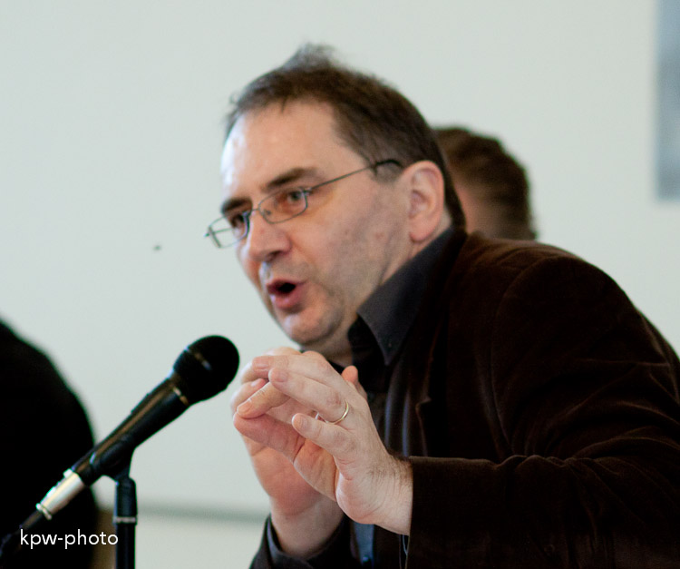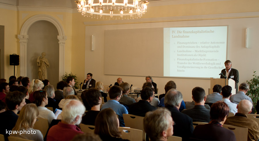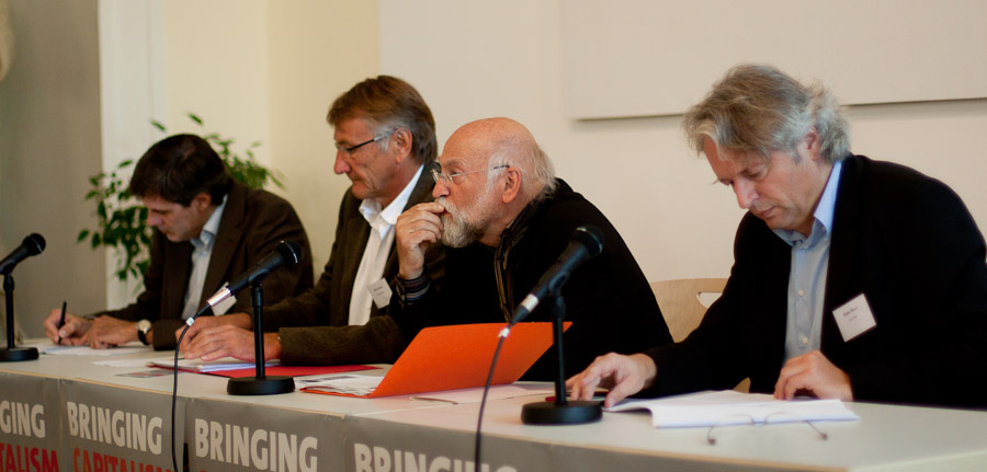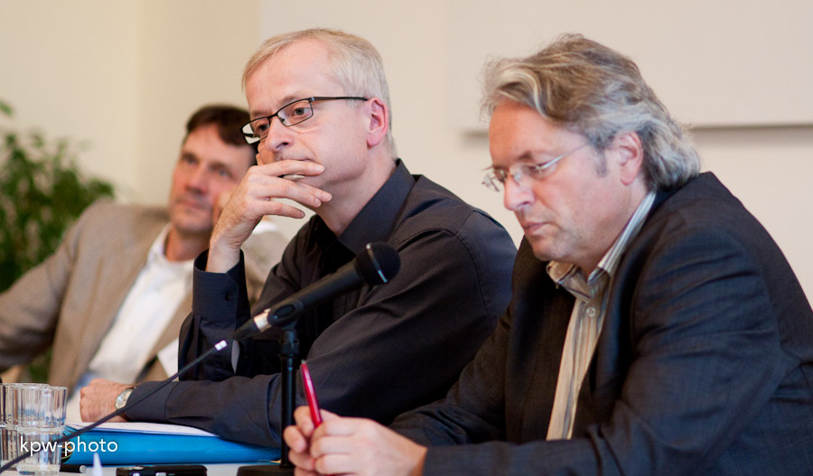Beim Abschluß-Plenum: Christoph Scherrer, Hans-Jürgen Urban und Klaus Dörre - wie voll ist das Glas? |