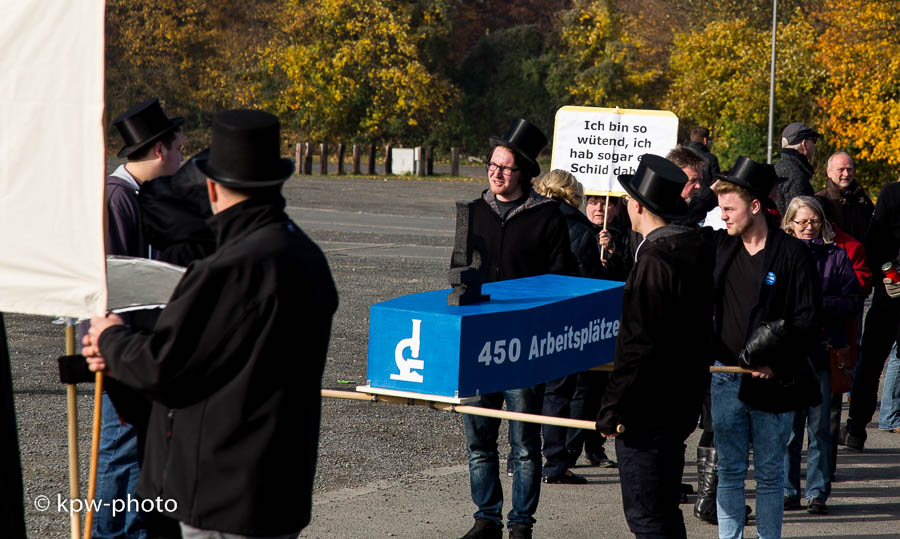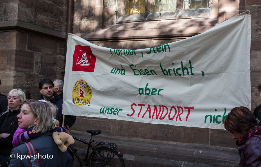 Eine Belegschaft wehrt sich dagegen: "Marmor, Stein und Eisen bricht, aber unser Standort nicht" (frei nach einem Schlager-Hit der 1960er Jahre) |