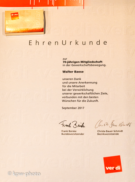 ver.di - Ortsverein Göttingen - Jubilarsehrung am 25. Oktober 2017 |