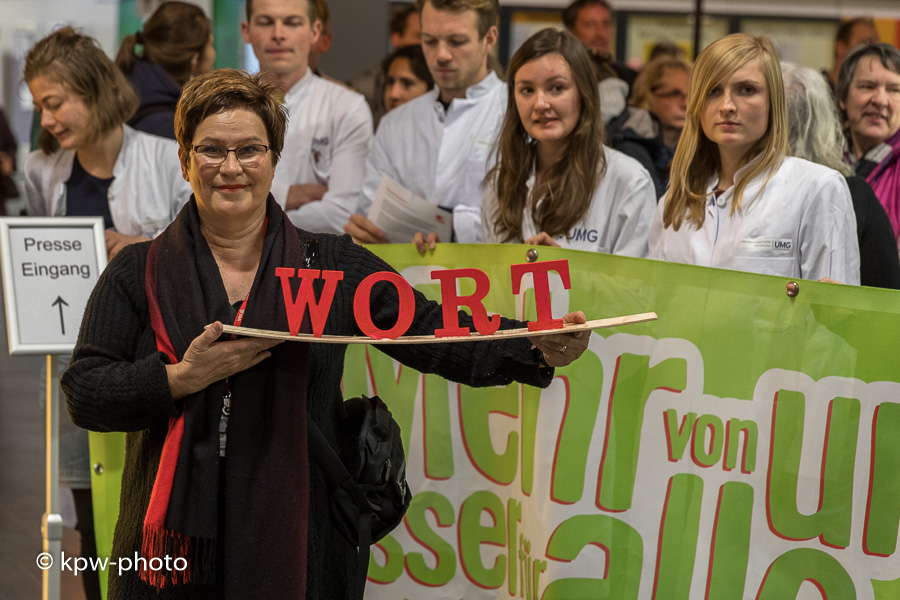 "Was vor der Wahl versprochen wurde, muss nach der Wahl auch umgesetzt werden" so Christiane Schulz von der ver.di Betriebsgruppe.