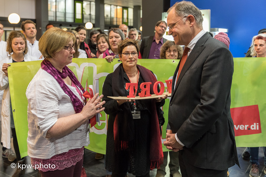 Am Montagabend empfingen eine ver.di Delegation der Uniklinik Göttingen Ministerpräsident Stephan Weil, der zu einem UMG-Jahresempfang anreiste.