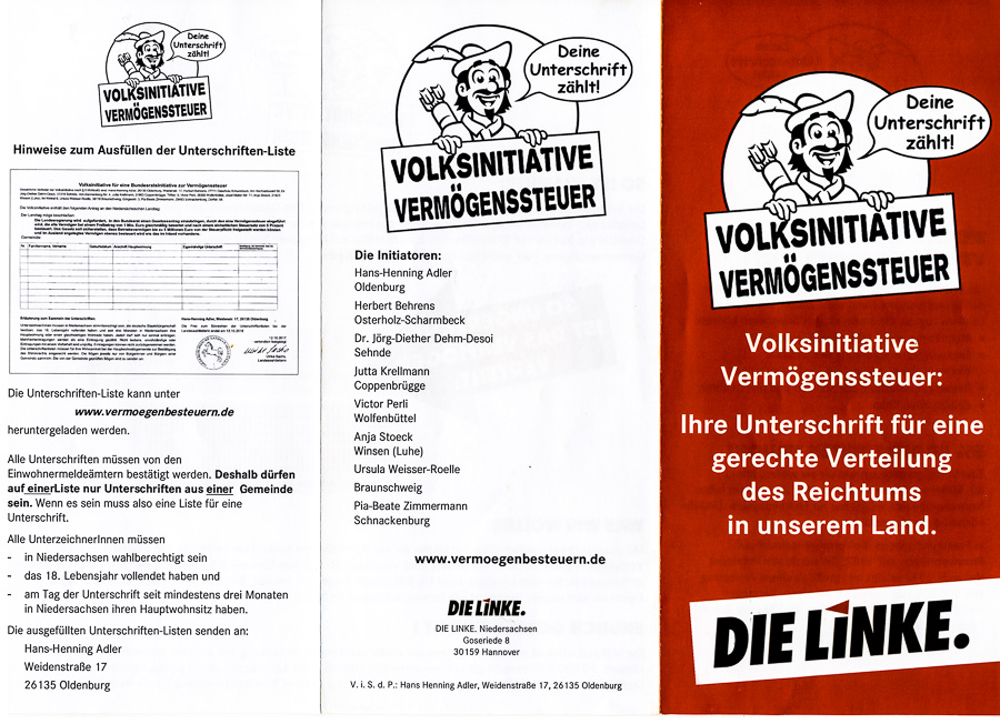 Volksinitiative Vermögenssteuer: Unterschriftensammlung an 26. März 2018
