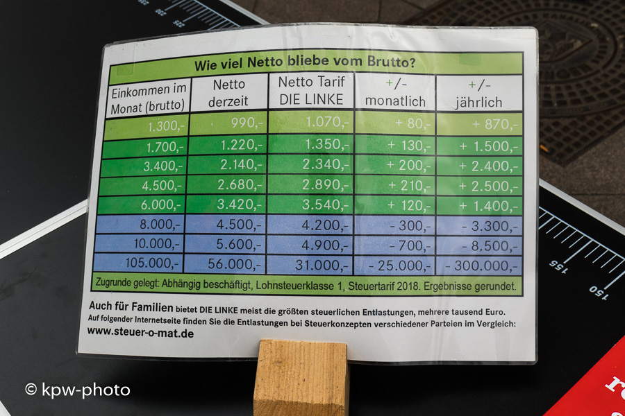 Diskussion bei der Unterschriftensammlung mit Edgar Schu (Die Linke; Mitglied des Rates der Stadt Göttingen)