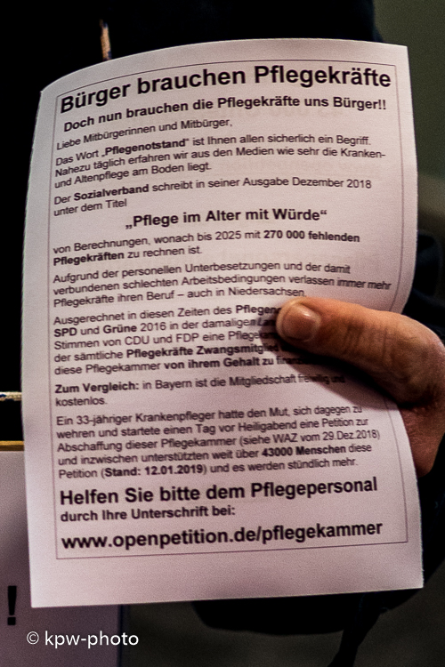 Gegen die (Zwangsmitgliedschaft in der) Pflegekammer Niedersachsen Kundgebung am 12. Januar 2019 in Göttingen |