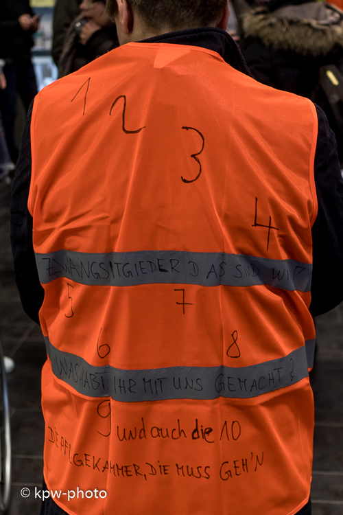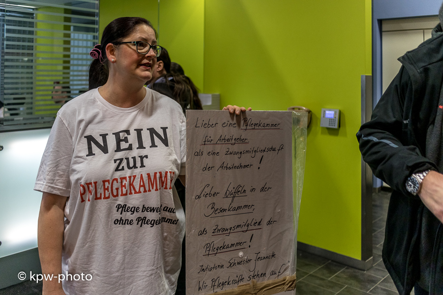 1 - 2 - 3 - 4 Zwangsmitglieder - das sind wir! 5 - 6 - 7 - 8 Was habt Ihr mit uns gemacht? 9 und auch die 10 die Pflegekammer, die muss geh'n |