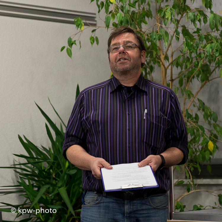 Tom Oesterreich weist auf die nächsten Veranstaltungen des Club Marx hin |