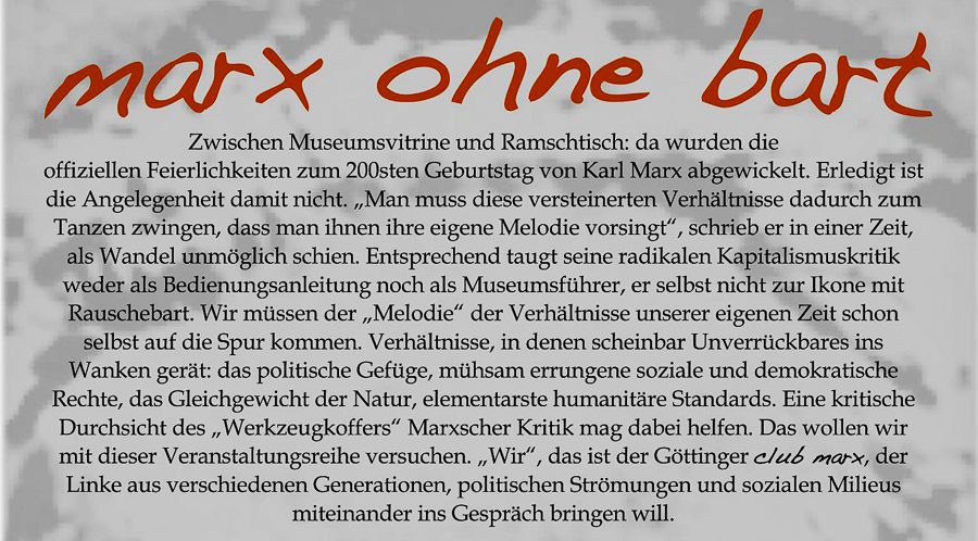 Veranstaltung des Club Marx (Göttingen) mit der Rosa-Luxemburg-Stiftung und in Kooperation mit ver.di Göttingen |