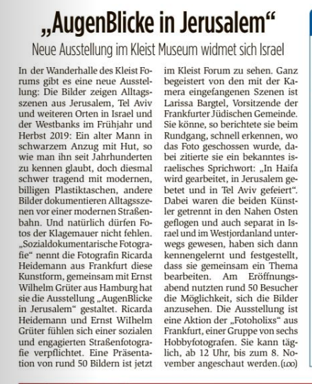 Ricarda Heidemann und Ernst Wilhelm Grüter: "AugenBlicke in Jerusalem"