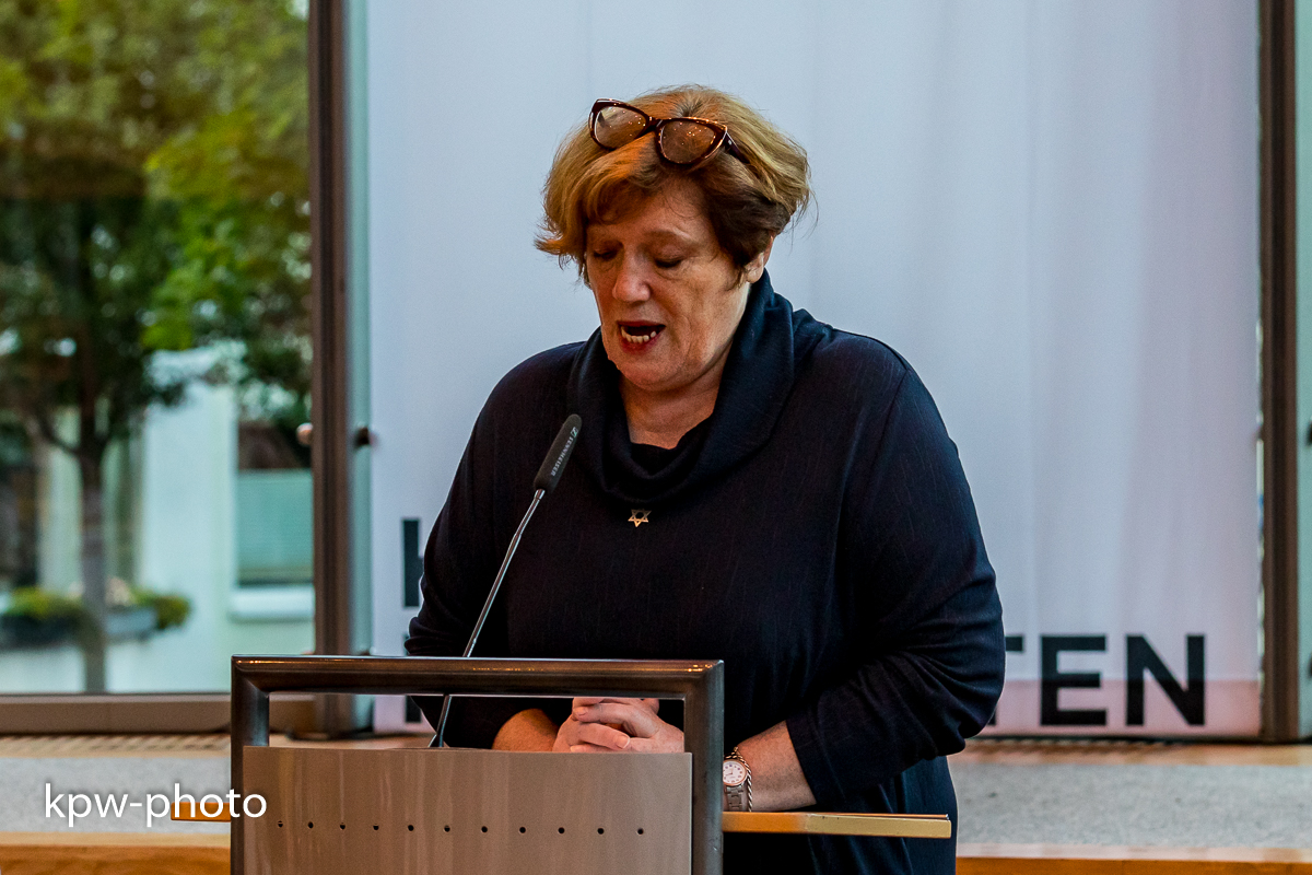 Die Vorsitzende der Jüdischen Gemeinde in Frankfurt/Oder, Larissa Bargtel, überbringt ein Grußwort