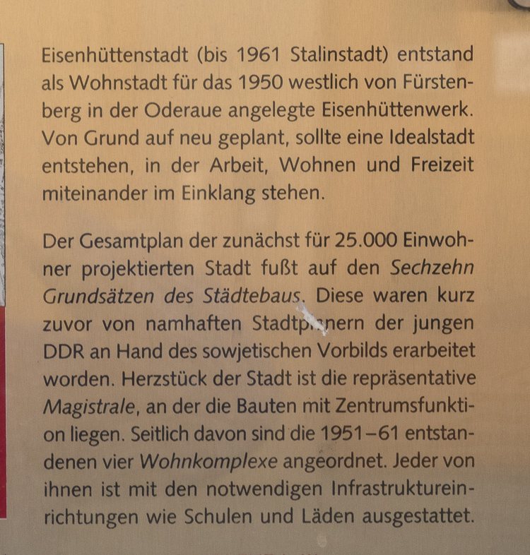 Tafel vor dem Rathaus zur "Leucht-Aufbauphase" von Stalinstadt/Eisenhüttenstadt