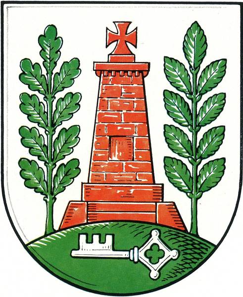 Das Wappen von Hillerse zeigt die Gefallenen-Gedenktstätte aus den 1920er Jahren auf dem Wartberg. |