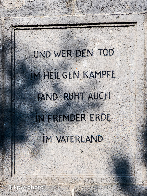 Der sichtbare Text entstand vermutlich bei der Neuanlage in der 1960er Jahren. Was es mit der offenbar vorgesetzten Schriftplatte auf sich hat, ist noch zu recherchieren. |