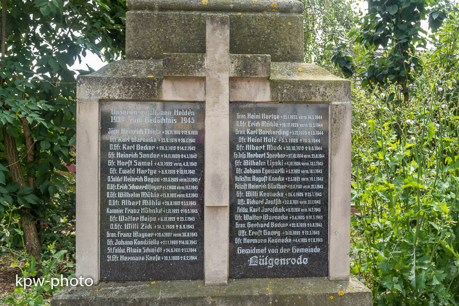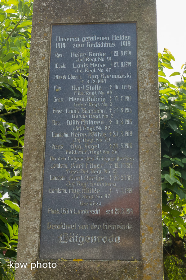"Unseren gefallenen Helden zum Gedächtnis ... Gewidmet von der Gemeinde Lütgenrode" |