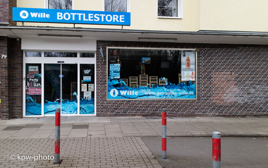 Der dritte Laden beherbergt heute einen "Bottlestore", eine besondere Form des Getränkemarktes. |
