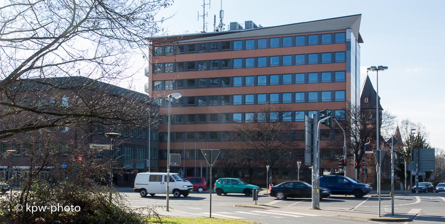 links der Erweiterungsbau - das Hauptgebäude mit aufgepeppter/m Fasssade/Dach |