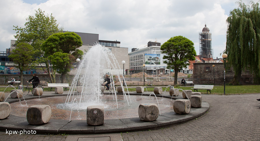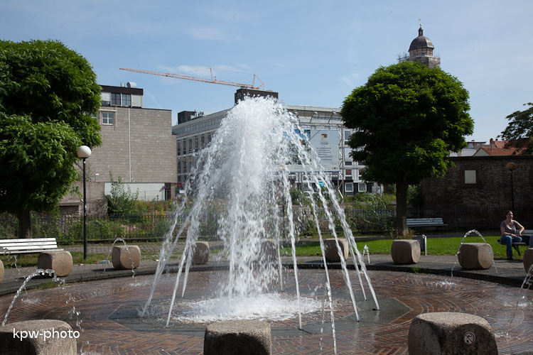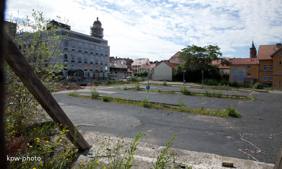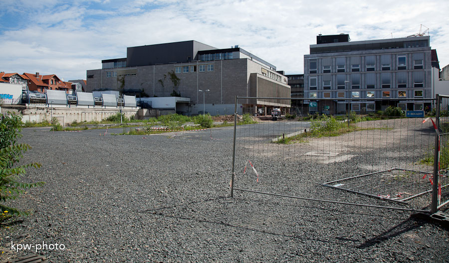 September 2011: Hinter dem Springbrunnen liegt die Brache ....