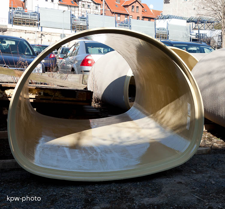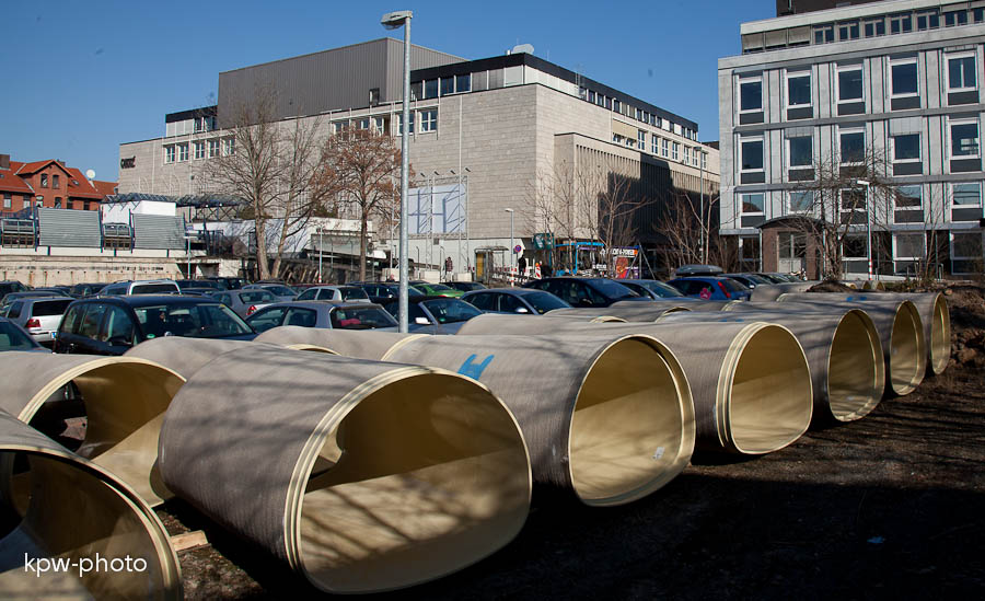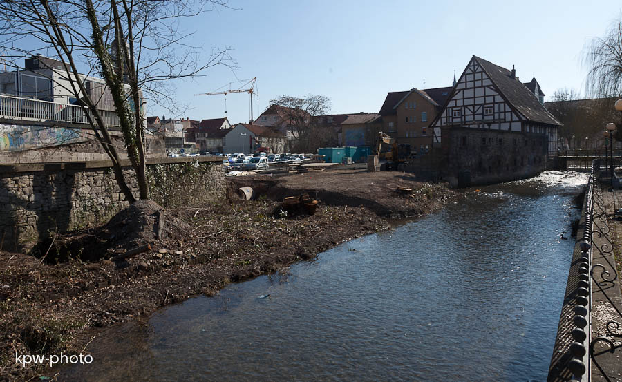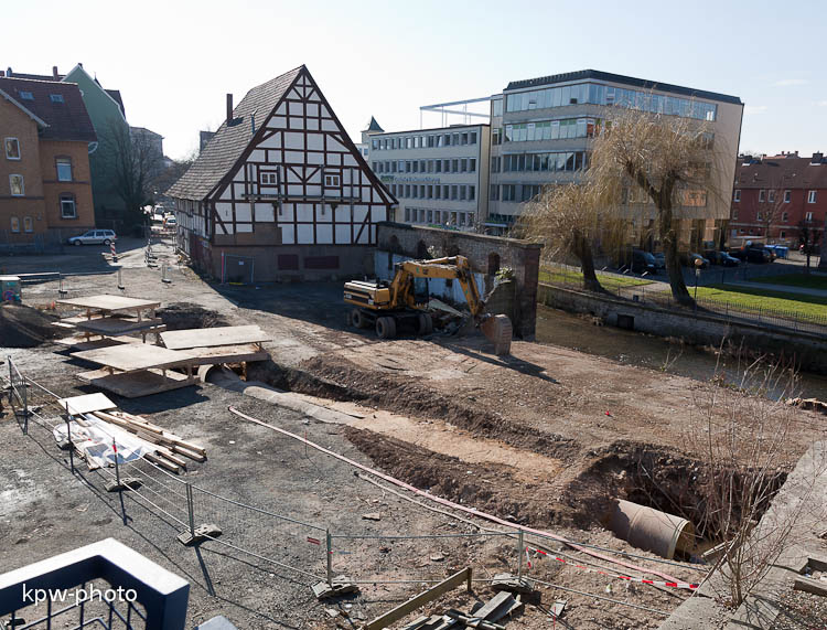 Stand Anfang Juli 2011: Es sind Rohre verlegt worden, der Uferstreifen am Leinekanal ist abgeholzt.