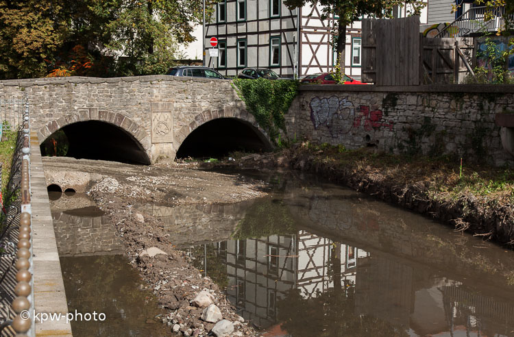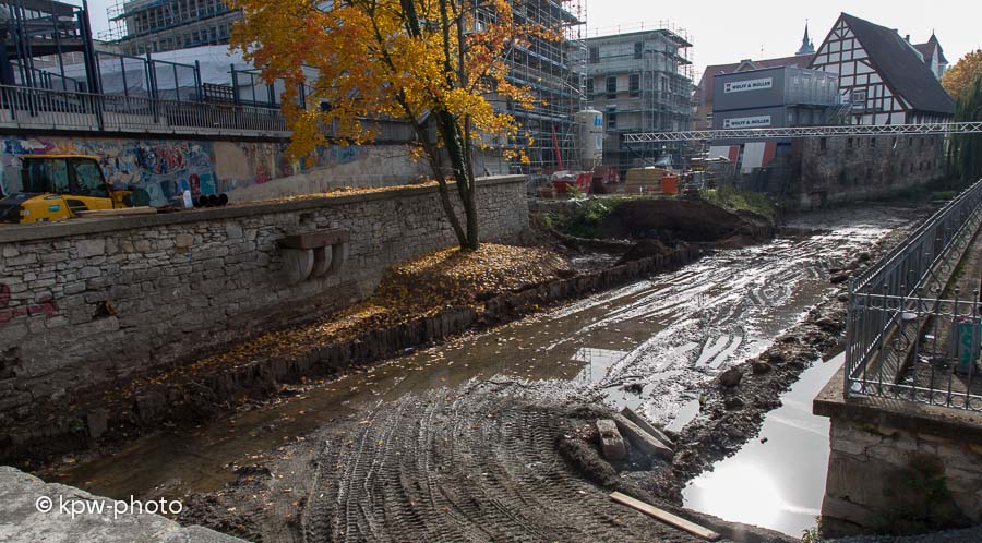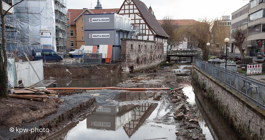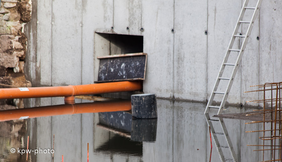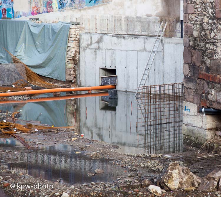 September 2012 - Bauvorbereitungen für die neue Brücke über den Leinekanal: Der Kanal wird kanalisiert |