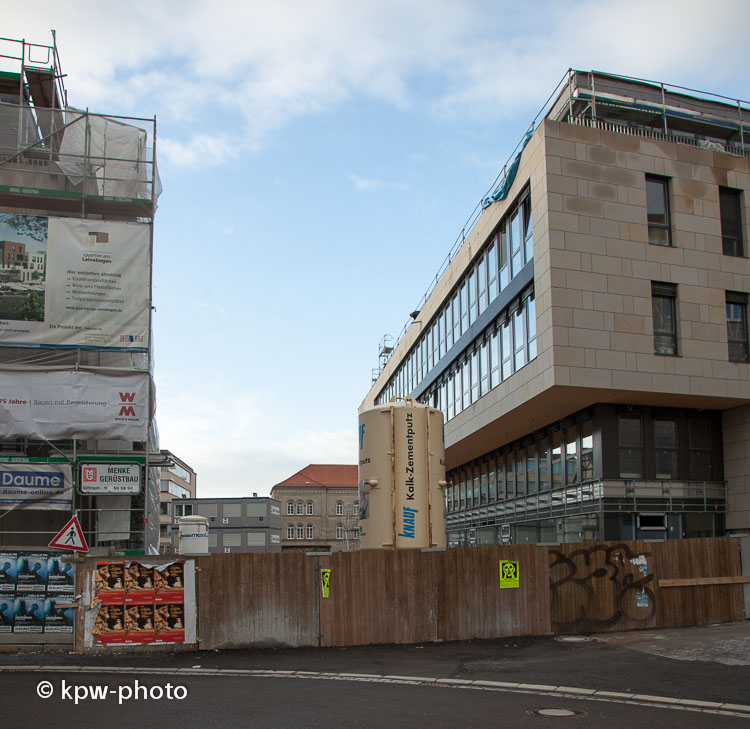 Blick Richtung Waageplatz Ende 2012: das rechte Gebäude ist bereits weit fortgeschritten |