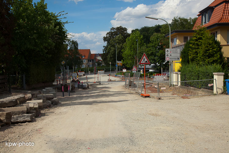 Blick vom Nikolausberger Weg zum Nonnenstieg. Auf der "grünen" Verkehrsinsel ist ein Fußweg angelegt. |