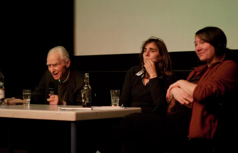 Theodor Bergmann, Julia Preuschel (Filmemacherin) und die Moderatorin Agnieszka Zimowska (DGB-Jugend) |