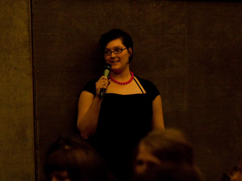 Agnieszka Zimowska, die Vertreterin der DGB-Jugend, begrüßt Theodor Bergmann und Julia Preuschel |