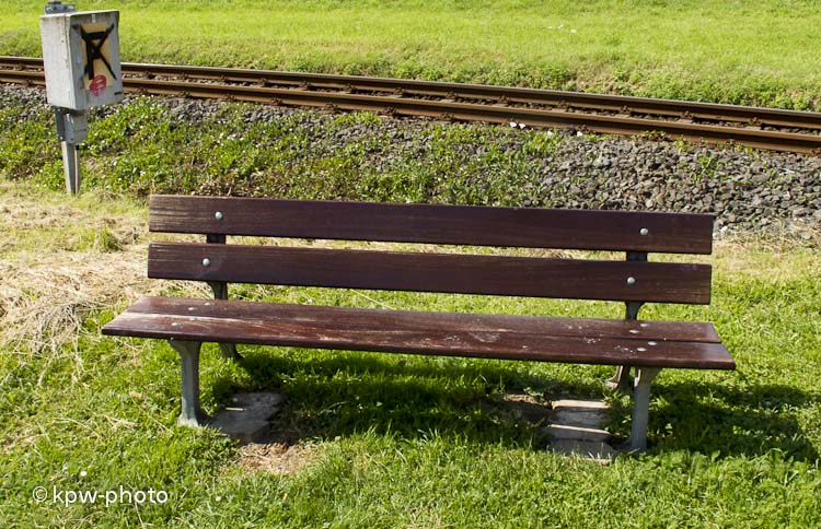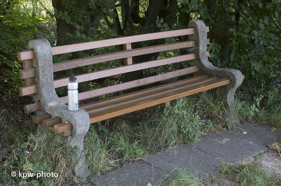 Bank mit Trinkflasche und besonderer Eigenschaft: kaum sitzbar