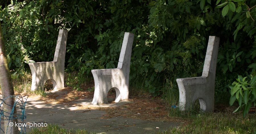 Bank mit Rettungsschirm? Von vorne kann es doch reinregnen. Da fehlt dann der Rettungsvorhang.