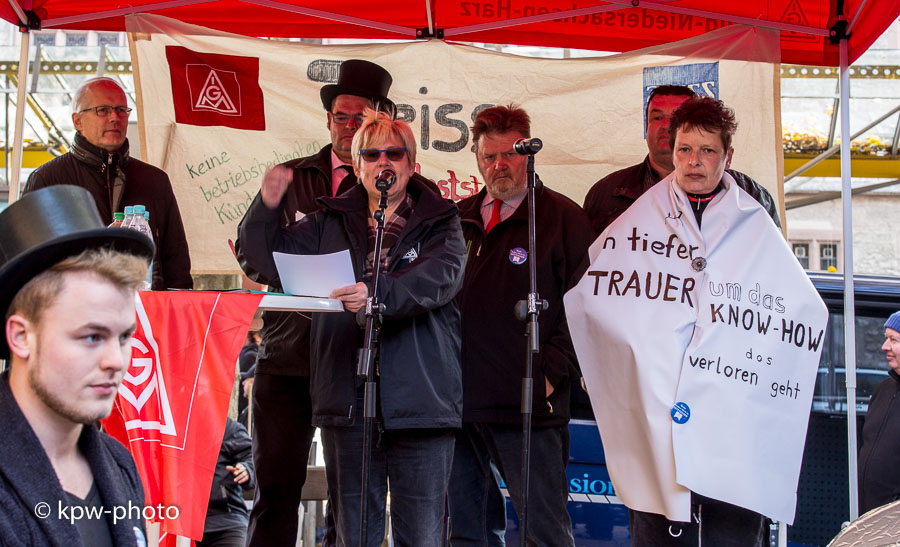 Martina Ditzell, 2. Bevollmächtigte der IG Metall Süd-Niedersachsen-Harz eröffnet die Kundgebung |