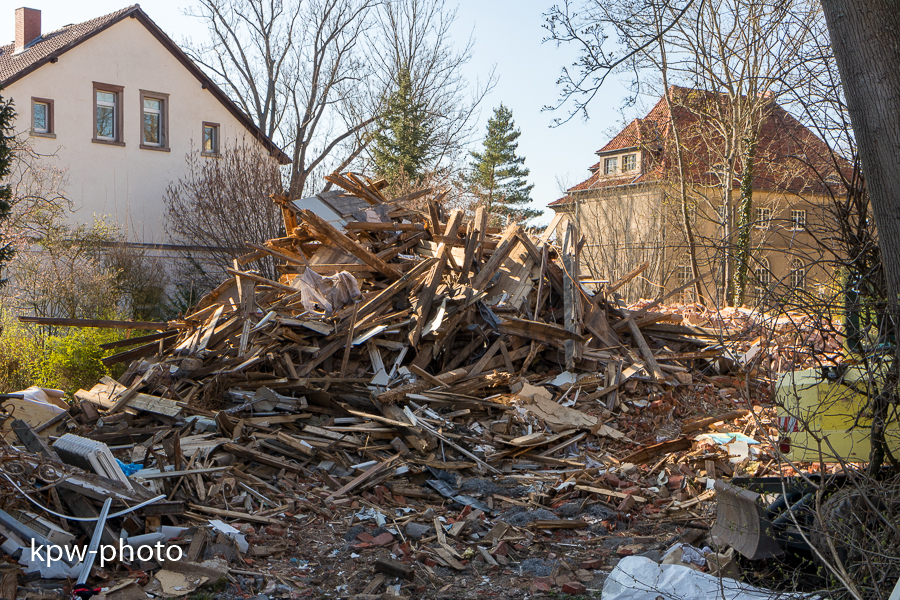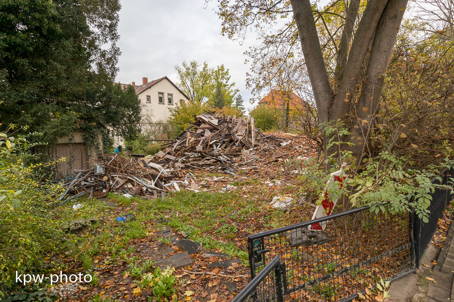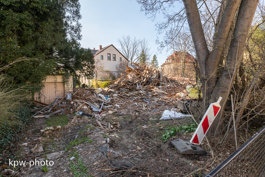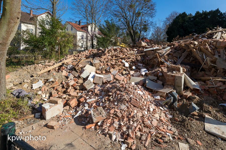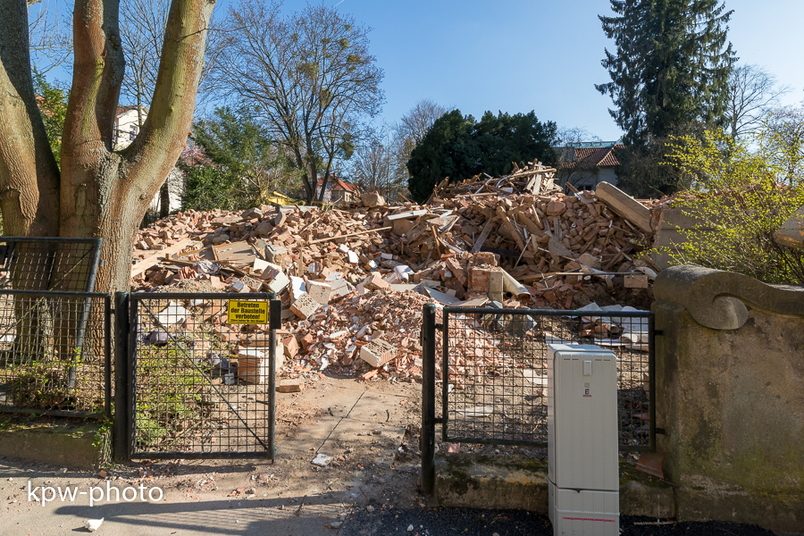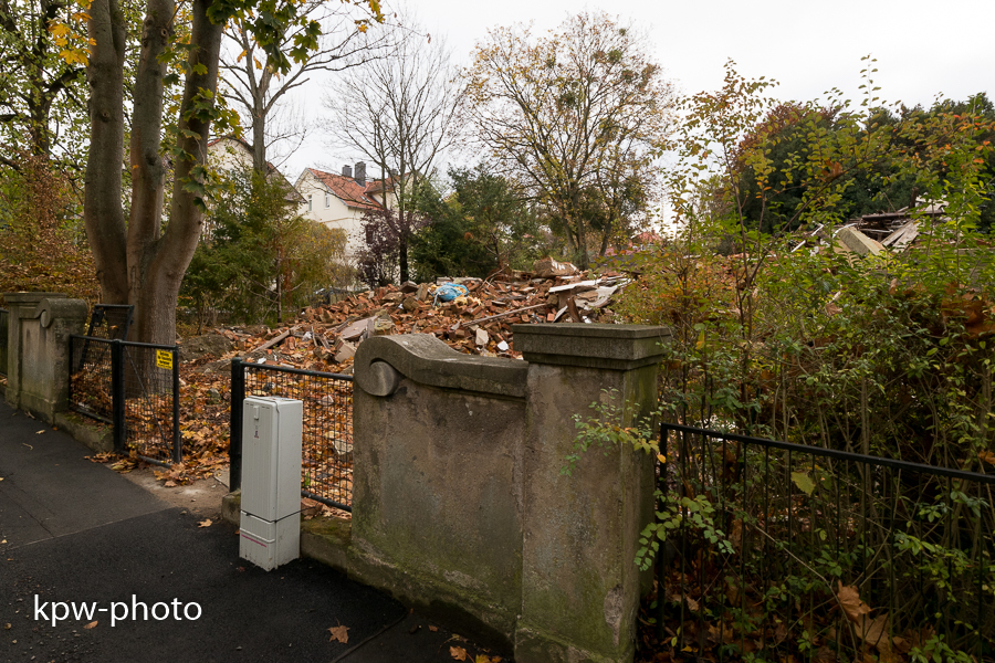 Friedländer Weg: Eltern haften für ihre Kinder, doch in diesem Falle können die Eltern nicht mehr haften, da die Kinder als Erben operieren. Schnell die Gründerzeit-Villa platt machen, ehe die Stadt die Bebauungsbedingungen ändert. Der Abrissbagger trat im Samstag in Aktion ......