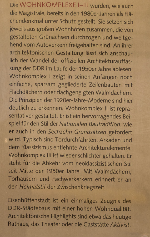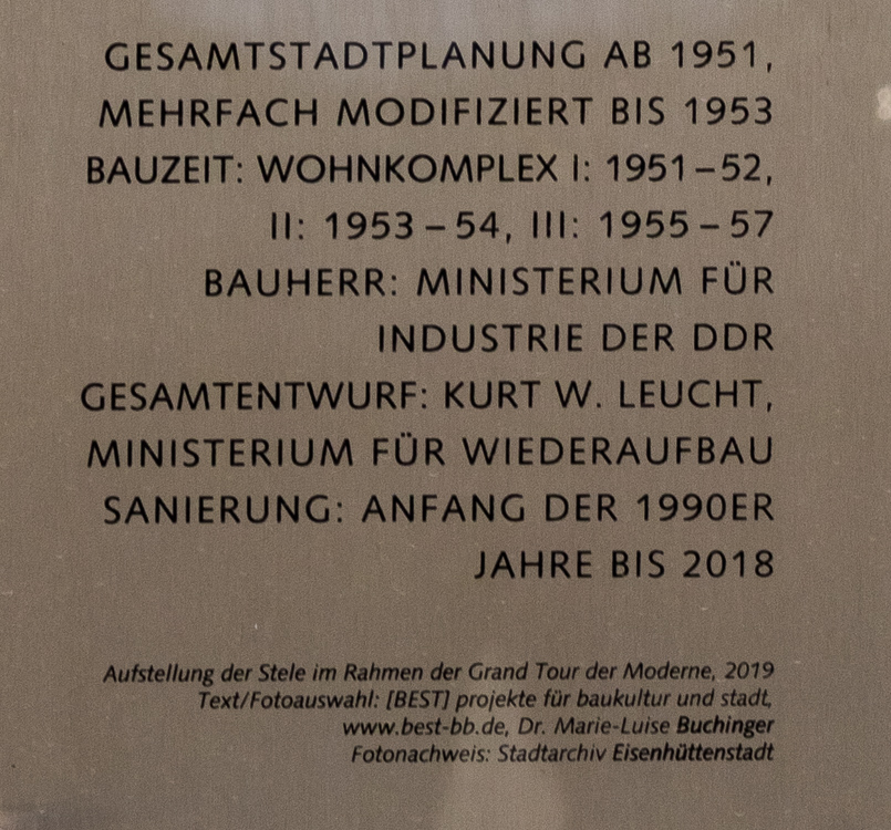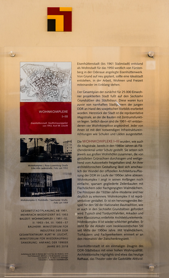 Tafel vor dem Rathaus zur "Leucht-Aufbauphase" von Stalinstadt/Eisenhüttenstadt